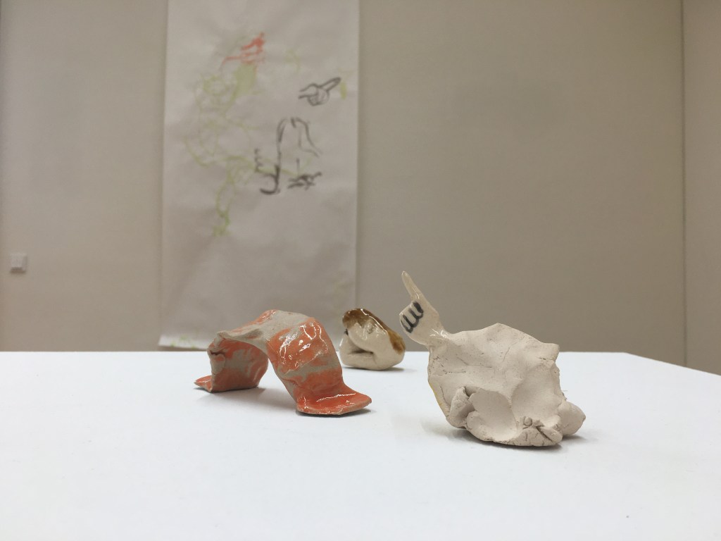 Kurze Begegnungen auf der Straße, wie Schnappschüsse. Ich vertiefe mich ins Material und spiele mit den entstehenden Fragmenten. Öffne eine Form und lasse eine neue hinzukommen, bevor sie sich verfestigt. Ein Störgeräusch und Fragen im Hintergrund. Die Spannung zwischen Ich und Du, Individuum und Kollektiv. Nicht entschieden, sondern flüchtig und in Aushandlung.